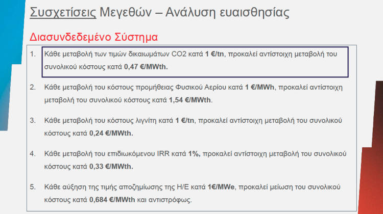 Μάλιστα η οικονομική ανάλυση του σχεδίου έγινε με παραδοχές κόστους δικαιωμάτων CO2 μόλις 35 ευρώ, όταν σήμερα το κόστος βρίσκεται πλέον κοντά στα 100 ευρω/τόνο.