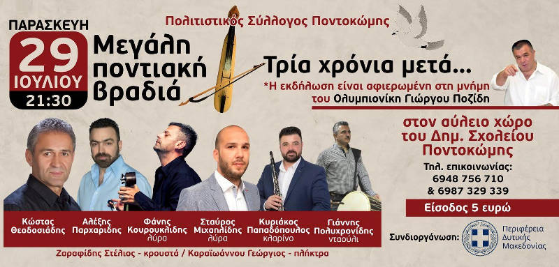 Πολιτιστικός Σύλλογος Ποντοκώμης – Παρασκευή 29 Ιουλίου