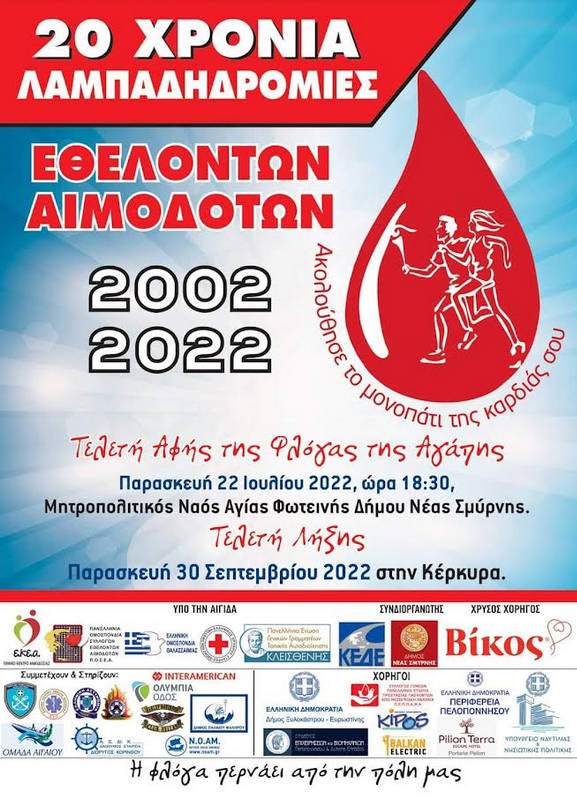 Επετειακή η φετινή 20η Λαμπαδηδρομία 2002 – 2022 της Εθελοντικής Αιμοδοσίας