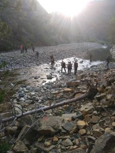 Η κατάσβεση της φωτιάς είναι ιδιαίτερα δύσκολη λόγω του δύσβατου της περιοχής και της ιδιαίτερης μορφολογίας του εδάφους.