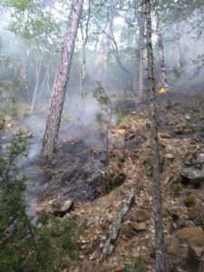 Το σημείο της φωτιάς είναι στα 1.400 μέτρα περίπου υψόμετρο, σε πετρώδες και δύσβατο σημείο, ενώ η φωτιά που βρίσκεται σε εξέλιξη είναι έρπουσα.