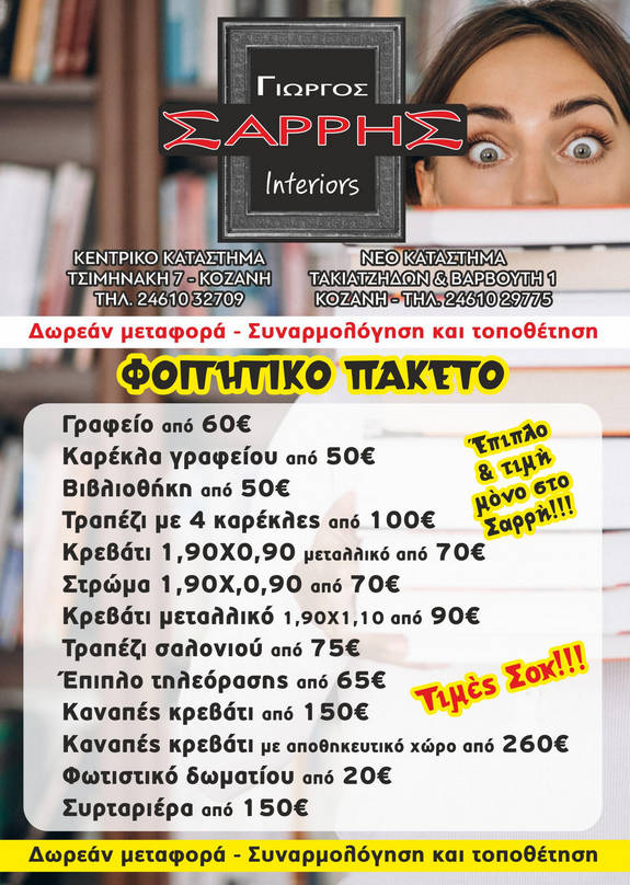 -Μεγάλες προσφορές από το κατάστημα Σαρρής Interiors σε φοιτητικά πακέτα και όχι μόνο!