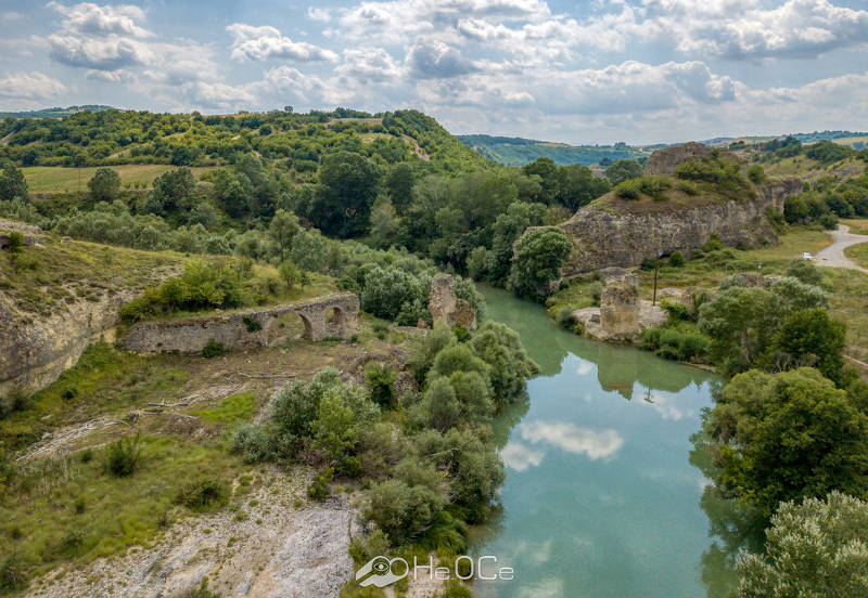 Η ανατολική όχθη του ποταμού είναι απότομη καθώς υπάρχει ένα ύψωμα, αντίθετα η δυτική όχθη είναι ομαλή και υπάρχει ένα παρόχθιο μονοπάτι το οποίο σε οδηγεί σε ένα σύμπλεγμα βράχων που αναπτύσσεται στην κοίτη του ποταμού βόρεια του γεφυριού και είναι ορατό κατά τους θερινούς μήνες όπου η στάθμη των νερών είναι χαμηλότερη. Εκεί σου δίνεται η δυνατότητα να παρατηρήσεις και να θαυμάσεις πώς η ροή του νερού του ποταμού έχει σχηματίσει το ανάγλυφο στους βράχους, όπου η κύρια ροή του ποταμού σχηματίζει πολλές διακλαδώσεις, δημιουργώντας μικρές λιμνούλες.