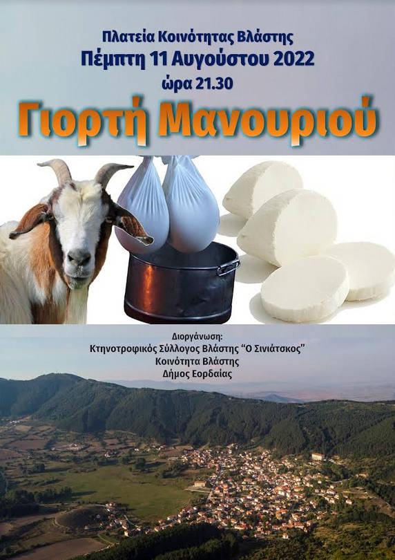 Πτολεμαΐδα 09/08/2022 Την Πέμπτη 11 Αυγούστου η Γιορτή Μανουριού στη Βλάστη Εορδαίας 0 Την Πέμπτη 11 Αυγούστου η Γιορτή Μανουριού στη Βλάστη Εορδαίας. Περισσότερες πληροφορίες στην παραπάνω αφίσα.
