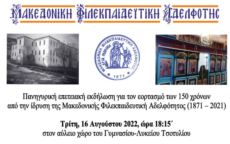 Πανηγυρική επετειακή εκδήλωση για τον εορτασμό των 150 χρόνων από την ίδρυση της Μακεδονικής Φιλεκπαιδευτική Αδελφότητος (1871 – 2021)