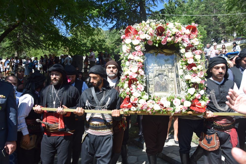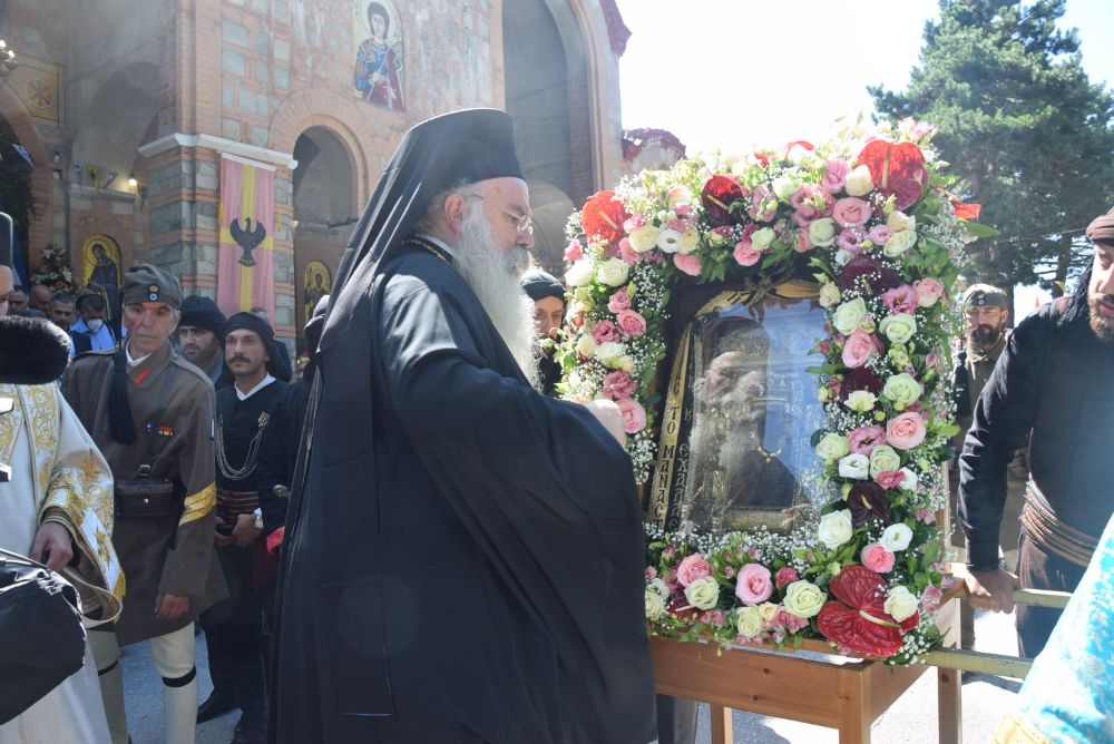 Στο πλαίσιο των εκδηλώσεων μετά την καθιερωμένη Θεία Λειτουργία στη Μονή της Παναγίας Σουμελά, κατατέθηκαν στεφάνια στην προτομή του Αλέξανδρου Υψηλάντη και ακολούθησε η λιτάνευση της εικόνας της Παναγίας.