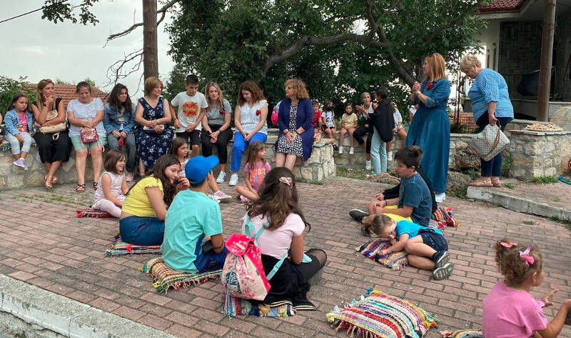 Δεν απουσίαζε, όμως, και ο λαϊκός αφηγητής που μας έκανε να κρεμόμαστε απ’ το στόμα του ενώ μας χάριζε μία σημαντική ιστορία του χωριού, την οποία οι εικαστικοί συνταξιδιώτες μας, η Γιώτα Καρβουνιάρη, ο Γιώργος Μαμαλίγκας και η Κική Στούμπου την αποτύπωναν με τα χρώματα τους.
