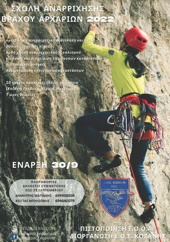 Σχολής Αναρρίχησης Βράχου Αρχαρίων τον Οκτώβρη του 2022.