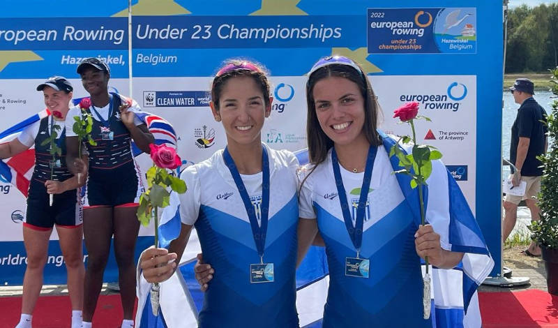 Χρυσό μετάλλιο κατέκτησαν η Στέλλα Νάτσιουλα και η Δήμητρα Ελένη Κοντού κέρδισαν τη 1η θέση στο τελικό του διπλού τερματίζοντας σε 7:01.71. Είναι το δεύτερο χρυσό για τη Στέλλα Νάτσιουλα, του Ναυτικού Ομίλου Καστοριάς, που αναδείχθηκε παγκόσμια πρωταθλήτρια στην κατηγορία Νεανίδων στο Βαρέζε, μαζί με την Σοφία Δαλίδου.