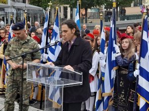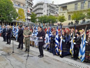 Στη συνέχεια, εκφωνήθηκε ο πανηγυρικός λόγος της ημέρας από τον κο Δελιόπουλο Γεώργιο, Φιλόλογο του 3ου ΓΕΛ Κοζάνης και ακολούθησε η κατάθεση στεφάνων.