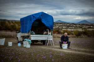 Εκατοντάδες καλλιεργητές και τα μέλη των οικογενειών τους βρίσκονται στα χωράφια, σκυμμένοι, συλλέγοντας ένα-ένα τα μωβ λουλούδια του. Ο βραβευμένος φωτογράφος από την Αιανή Κοζάνης Δημήτρης Βαβλιάρας αποτύπωσε με τον φωτογραφικό του φακό στιγμές της διαδικασίας.