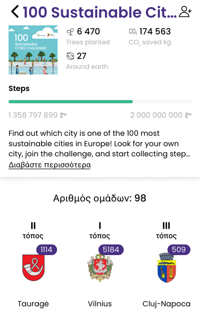 Με το σύνθημα «Περπατάμε για την Κοζάνη» οι πολίτες του δήμου μας συμμετείχαν στην Πρόκληση 100 Βιώσιμες Πόλεις (Challenge 100 Sustainable Cities), που διοργανώθηκε από τον Δήμο Ταουραγκέ της Λιθουανίας και ολοκληρώθηκε στις 16 Οκτωβρίου.