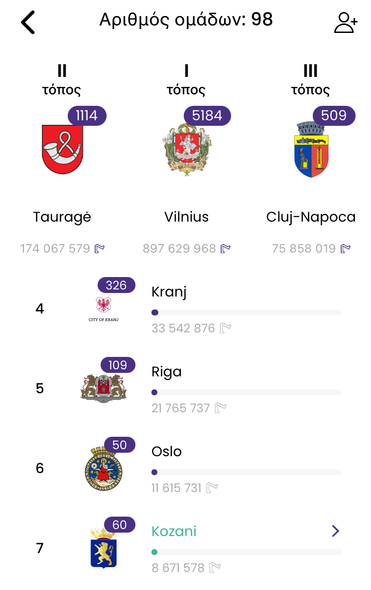 Συνολικά έγιναν 8.671.578 βήματα από τους πολίτες του δήμου μας, κατατάσσοντας την Κοζάνη στη 7η θέση, στο σύνολο των 98 πόλεων που συμμετείχαν στη συγκεκριμένη δράση. Σημειώνεται, ότι στην πρώτη δεκάδα των πόλεων που διακρίθηκαν συμπεριλαμβάνονται πρωτεύουσες χωρών όπως η Βίλνιους της Λιθουανίας, η Ρίγα της Λετονίας και το Όσλο της Νορβηγίας.