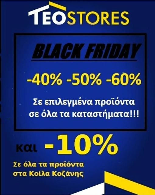 Κοζάνη 25/11/2022 Black Friday στα καταστήματα TEO STORES στην Κοζάνη & στην Κέρκυρα : Έως -60% σε επιλεγμένα είδη 0 Τα καταστήματα TEO STORES σας προσφέρουν μοναδικές μοναδικές εκπτώσεις -40%, -50% έως -60% σε επιλεγμένα είδη και -10% έκπτωση σε όλα τα είδη σε Κοζάνη & Κέρκυρα!