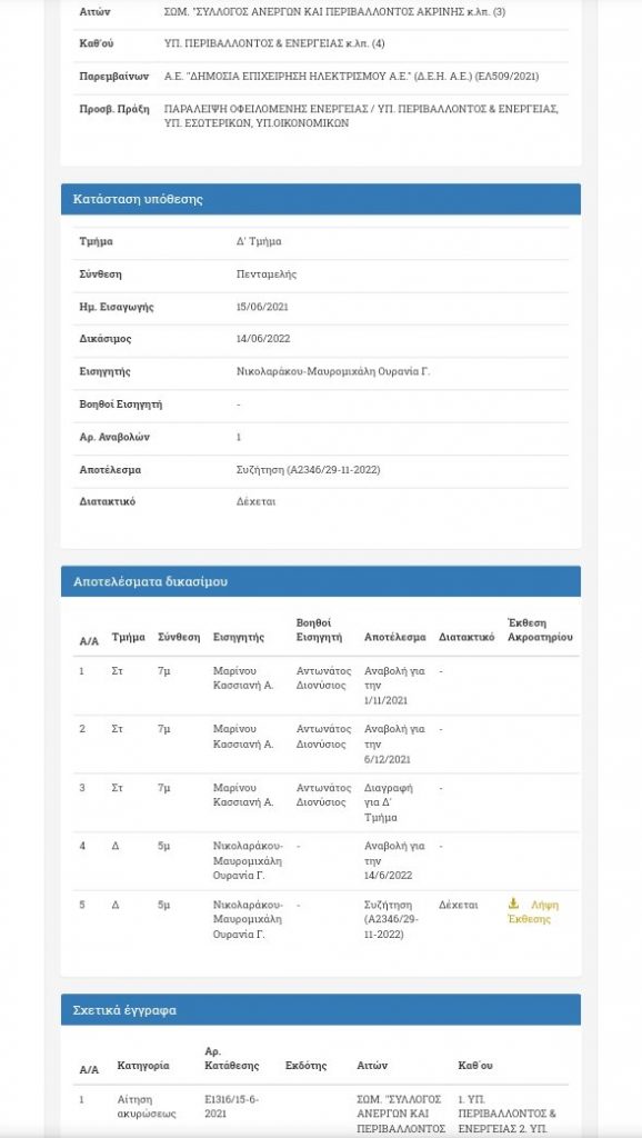 Αξίζει να αναφερθεί πως χθες το βράδυ, Σάββατο 3 Δεκεμβρίου, δημοσιοποιήθηκε η απόφαση του Συμβουλίου της Επικρατείας η οποία έκανε δεκτή την προσφυγή του Συλλόγου Περιβάλλοντος Ακρινής και κατοίκων για το θέμα της μετεγκατάστασης του χωριού. Πρόκειται για μια απόφαση σταθμό για την πολύπαθη κοινότητά και το μέλλον της αλλά και για τη μακροχρόνια ανάλγητη  στάση της εξουσίας, η οποία δεν εφάρμοσε το νόμο που η ίδια ψήφισε εδώ και σχεδόν δώδεκα χρόνια!