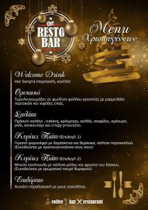 RESTO BAR – Υψηλών προδιαγραφών εστιατόριο με πλήρες μενού κρασιών, εδεσμάτων και ποτών & εορταστικό ΜENU!