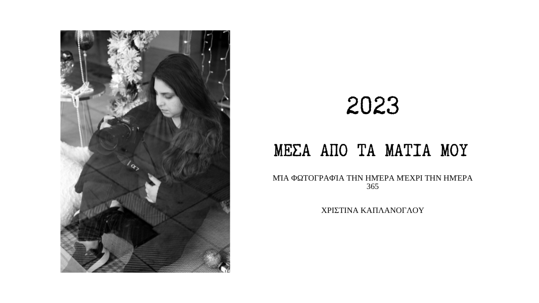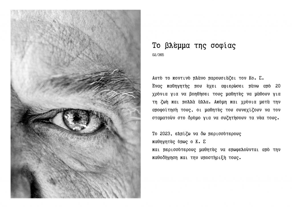 Ο κόσμος γύρω μας είναι γεμάτος με ανείπωτες ιστορίες που περιμένουν να ακουστούν. Γι’ αυτό θέτω δύο νέα προσωπικά goals για το 2023. Ο πρώτος στόχος μου είναι να γνωρίσω νέο κόσμο, κόσμο που έχει κάτι ξεχωριστό να μοιραστεί. Ο δεύτερος στόχος μου είναι να χρησιμοποιήσω το φακό μου και να απαθανατίζω μια μοναδική φωτογραφία και ιστορία κάθε ανθρώπου που γνωρίζω για κάθε ημέρα μέχρι και την 31 Δεκεμβρίου 2023 όπου και σημαίνει το τέλος του έτους.