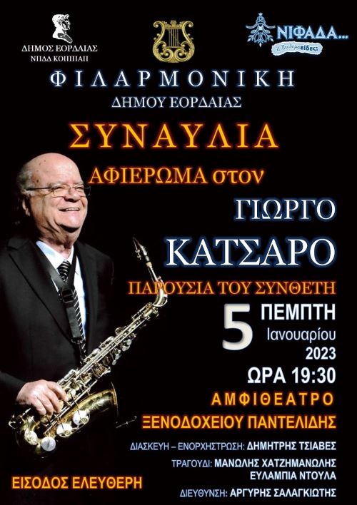 H νέα χρονιά ξεκινά, με μια μεγάλη συναυλία – αφιέρωμα στον συνθέτη Γιώργο Κατσαρό, την οποία θα τιμήσει με την παρουσία του ο ίδιος ο συνθέτης. Τραγούδια από το “Να η ευκαιρία” και τον Ελληνικό κινηματογράφο, που όλοι μας έχουμε σιγοτραγουδήσει, θα τα ξαναθυμηθούμε και θα τα ξανατραγουδήσουμε μαζί.