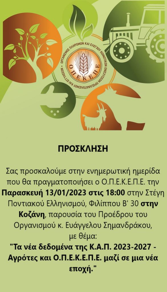 Κοζάνη 09/01/2023 Ενημερωτική ημερίδα από τον Ο.Π.Ε.Κ.Ε.Π.Ε. στην Στέγη Ποντιακού Πολιτισμού 0 Ενημερωτική ημερίδα, από τον Ο.Π.Ε.Κ.Ε.Π.Ε., την Παρασκευή 13/1/2023, στην Στέγη Ποντιακού Πολιτισμού, παρουσία του Προέδρου Ε. Σημανδράκου.