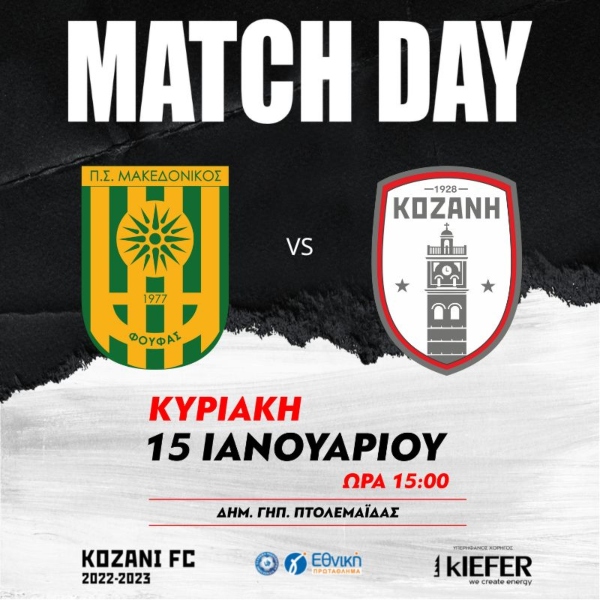 Αθλητικά 15/01/2023 Έχει αγώνα σήμερα…….. η ομάδας μας ΦΣ Κοζάνη, αγωνίζεται στην Πτολεμαΐδα απέναντι στον Μακεδονικό Φούφα. 0 Καλή επιτυχία στην ομάδα μας. 🏆ΑΓΩΝΑΣ ΠΡΩΤΑΘΛΗΜΑΤΟΣ Γ’ ΕΘΝΙΚΗΣ – 9η ΑΓΩΝΙΣΤΙΚΗ ΚΥΡΙΑΚΗ 15 ΙΑΝΟΥΑΡΙΟΥ 2023 ⌚️ 15:00 🏟 ΔΗΜ. ΣΤΑΔΙΟ ΠΤΟΛΕΜΑΪΔΑΣ ΜΑΚ. ΦΟΥΦΑ VS ΦΣ ΚΟΖΑΝΗ ⚽️