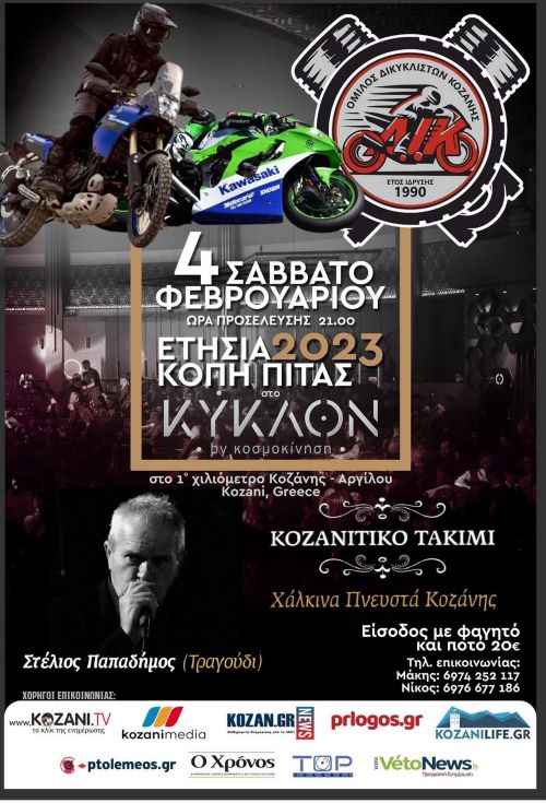 Ο Όμιλος Δικυκλιστών Κοζάνης (Ο.ΔΙ.ΚΟ.) διοργανώνει το Σάββατο 4 Φεβρουαρίου την ετήσια κοπή πίτας στο ΚΎΚΛΟΝ By KOSMOKINISI.