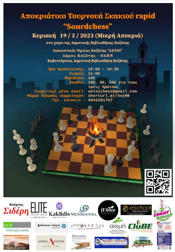 Σας περιμένουμε με χαρά την Κυριακή της Μικρής Αποκριάς στις 19.02.2023 στο φουαγιέ της Κοβενταρείου Δημοτικής Βιβλιοθήκης για να παίξουμε – τι άλλο – “Sourdchess” !!!