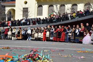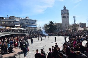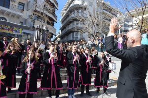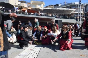 Μια φαντασμαγορική εικόνα δημιούργησαν εκπρόσωποι και μέλη των φανών της πόλης, στην κεντρική πλατεία το μεσημέρι της Κυριακής19 Φεβρουαρίου 2023.