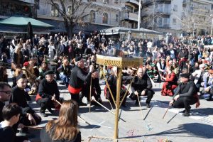 Σε ένα κύκλο όλοι μαζί ντυμένοι με παραδοσιακές φορεσιές έστησαν τον χορό, τραγούδησαν παραδοσιακά αποκριάτικα τραγούδια παρουσιάζοντας σε επισκέπτες, ντόπιους και όσους βρέθηκαν στην πλατεία, το μακροβιότερο έθιμο της πόλης, την Κοζανίτικη Αποκριά.