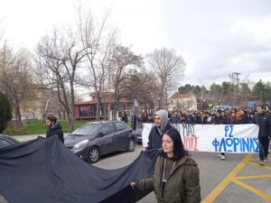 Αντίστοιχη κινητοποίηση πραγματοποιήθηκε και στη Φλώρινα. Οι Φοιτητικοί Σύλλογοι της πόλης, μαζί με δεκάδες μαθητές πραγματοποίησαν πορεία στους δρόμους της Φλώρινας διατρανώνοντας ότι αυτό το έγκλημα δεν θα ξεχαστεί. Η πορεία κατέληξε στον σταθμό των τρένων όπου έγινε κατάθεση στεφάνων. Τις επόμενες ημέρες θα αποφασιστούν και νέες κινητοποιήσεις από τους φοιτητές.