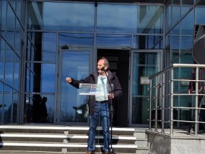 Εκπρόσωποντας τον δήμαρχο Κοζάνης Λάζαρο Μαλούτα η κυρία Τουμπουλίδου, “Να πάρουν πρωτοβουλίες και να δώσουν λύση στη βιωσιμότητα των ΔΕΥΑ. Όχι στην ιδιωτικοποίηση του δημοσίου αγαθού. Αυτή τη μάχη θα τη δώσουμε όλοι μαζί. “