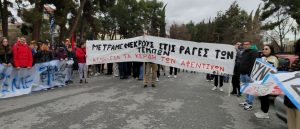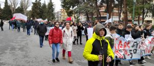 Με συνθήματα ”Το έγκλημα αυτό να μην συγκαλυφθεί -όλων των νεκρών να γίνουμε φωνή”, ”Κέρδη βουτηγμένα των φοιτητών το αίμα” και ”Εσείς μετράτε υλικές ζημιές -Εμείς μετράμε ανθρώπινες ζωές”, πραγματοποιήθηκε η συγκέντρωση διαμαρτυρίας και στη συνέχεια πορεία, λίγο μετά τις 11και μισή το πρωί της Πέμπτης 16 Μαρτίου 2023, με αφορμή την πανελλαδική κινητοποίηση που βρίσκεται όλη η χώρα.