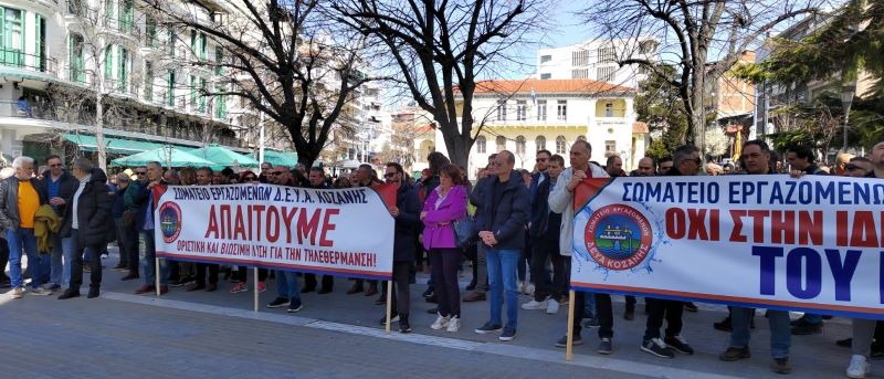 Με αφορμή την ψήφιση του νομοσχεδίου του υπουργείου Περιβάλλοντος και Ενέργειας για τον έλεγχο και την εποπτεία της Ρυθμιστικής Αρχής Αποβλήτων Ενέργειας και Υδάτων, προχώρησαν η ΔΕΥΑ Κοζάνης, συνδικάτα, φορείς και εκπρόσωποι συνδυασμών τοπικής αυτοδιοίκησης και σωματείων σε συγκέντρωση διαμαρτυρίας στην κεντρική πλατεία.