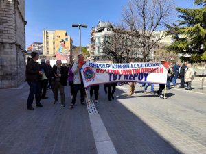 Στην συνέχεια της σημερινής συγκέντρωσης πραγματοποιήθηκε πορεία σε κεντρικό δρόμο της πόλης με κύριο σύνθημα ‘ρεύμα και νερό δεν είναι εμπορεύματα ανήκουν στον λαό’.