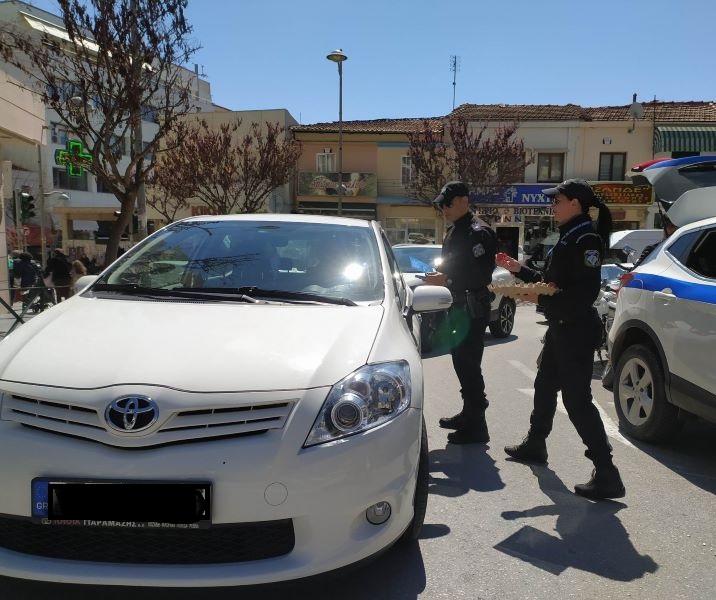 Ταυτόχρονα μοίραζαν ενημερωτικά φυλλάδια που περιέχουν συμβουλές οδικής ασφάλειας και κυκλοφοριακής αγωγής για ασφαλείς μετακινήσεις, καθώς και συμβουλές για την αποφυγή τραυματισμών από τη χρήση βεγγαλικών, πυροτεχνημάτων και κροτίδων.
