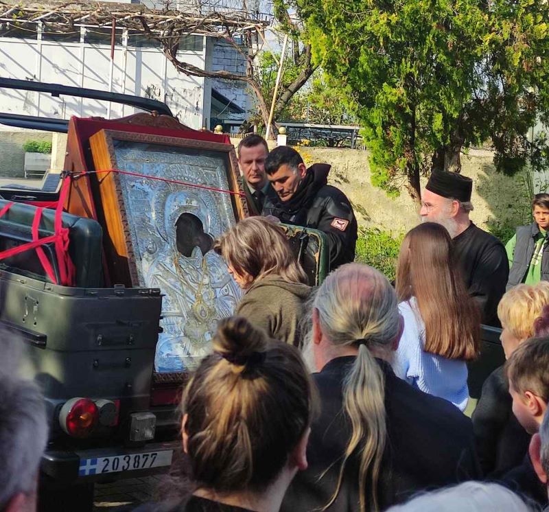 Λίγο πριν τις 19:30 κατέφθασε η εικόνα της Παναγίας Ζιδανιώτισσας στον Ιερό Ναό των Αγίων Κωνσταντίνου και Ελένης, το απόγευμα της Παρασκευής 21 Απριλίου 2023.