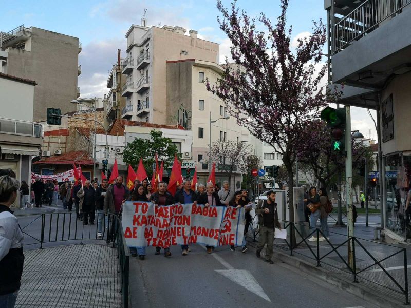 Ακολούθησε πορεία στην πόλη φωνάζοντας δυνατά συνθήματα όπως : «είστε η σαπίλα όλου του ντουνιά , μπλόκο στους φασίστες σε κάθε γειτονιά », «αγώνας ρήξη ανατροπή , η ιστορία γράφεται με πάλη ταξική». Στο τέλος της συγκέντρωσης ο γραμματέας του Τ.Σ. της ΚΝΕ Μενύχτας Νίκος χαιρέτησε την κινητοποίηση , τόνισε ότι σε ΚΚΕ και ΚΝΕ δεν πιάνουν οι απειλές και κάλεσε την νεολαία  να συμμετέχει μαζικά στις μάχες του επόμενου διαστήματος , στέλνοντας ταυτόχρονα το μήνυμα για 1η δύναμη ΠΚΣ ξανά στις 10 Μάη .
