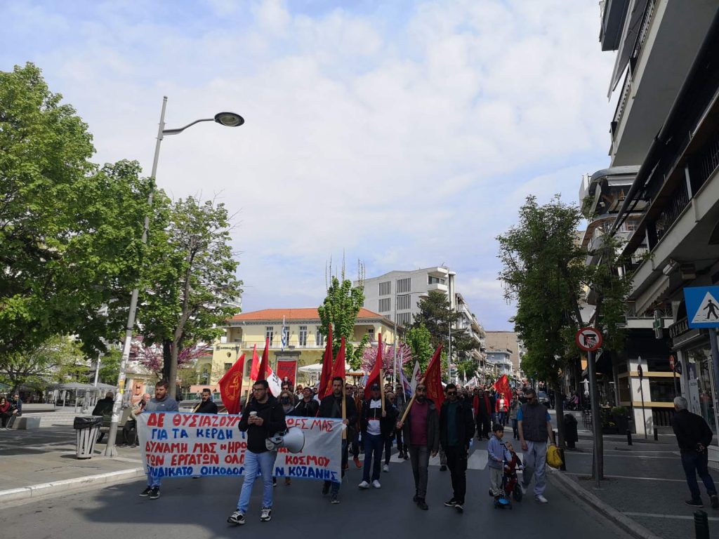 Μαζική και μαχητική απεργιακή κινητοποίηση πραγματοποιήσανε εργατικά σωματεία και άλλοι φορείς σήμερα στην Κοζάνη για να τιμήσουν την εργατική πρωτομαγιά. Με τα πανό και συνθήματα πραγματοποίησαν πορεία στους δρόμους της πόλης όπου ακούστηκαν συνθήματα που είναι επίκαιρα μετά την 1η ΜΑΗ του Σικάγο το 1886. Χωρίς εσένα γρανάζι δεν γυρνά εργάτη μπορείς χωρίς αφεντικά, Κόκκινη πρωτομαγιά πρωτοπόρα εργατικά ακούστηκαν στο κέντρο της πόλης. Ταυτόχρονα δόθηκε και ένα μήνυμα στους φασίστες που βγήκαν από τις τρύπες τους ότι ο λαός με τον αγώνα μέσα από τα σωματεία και του φορείς του θα του στείλει στο σκουπιδοτενεκέ της ιστορίας.