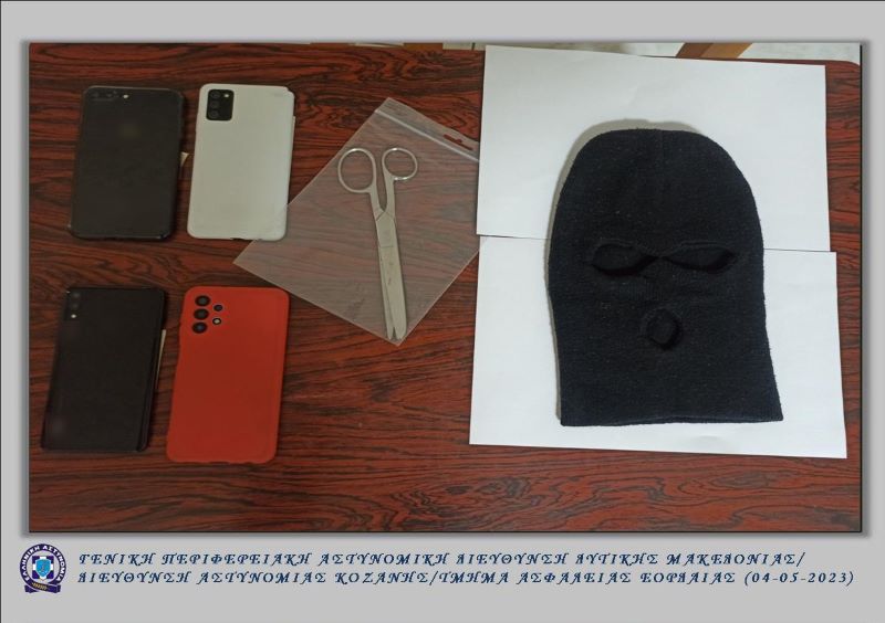 Άμεσα οργανώθηκε αστυνομική επιχείρηση και μετά από επισταμένες αναζητήσεις των προαναφερόμενων αστυνομικών εντοπίσθηκαν και συνελήφθησαν στην πόλη της Πτολεμαΐδας, οι δύο 17χρονες και η 24χρονη στην κατοχή των οποίων βρέθηκαν και κατασχέθηκαν -1- αιχμηρό αντικείμενο (ψαλίδι), είδος ένδυσης που έφερε η μία εκ των συλληφθέντων κατά τη τέλεση των ανωτέρω εγκληματικών ενεργειών (κουκούλα τύπου full face), -4- κινητά τηλέφωνα και -3- κάρτες sim ως μέσα τέλεσης των αξιόποινων πράξεων.