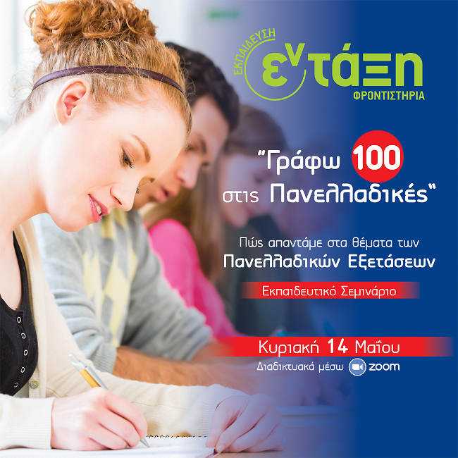 Γράφω 100 στις Πανελλαδικές”, Οnline Σεμινάριο, 14 Μαΐου 2023.