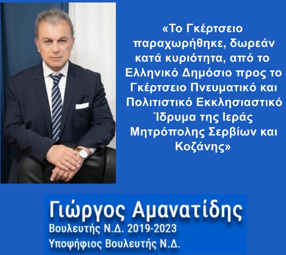 Γιώργος Αμανατίδης:«Το Γκέρτσειο παραχωρήθηκε, δωρεάν κατά κυριότητα, από το Ελληνικό Δημόσιο προς το Γκέρτσειο Πνευματικό και Πολιτιστικό Εκκλησιαστικό Ίδρυμα της Ιεράς Μητρόπολης Σερβίων και Κοζάνης»