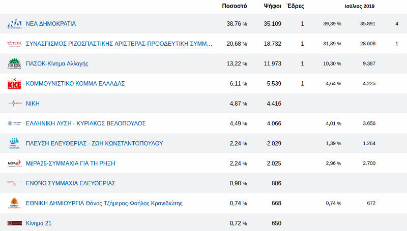 1 έδρα ΚΚΕ (Μ. Κουζιάκη)