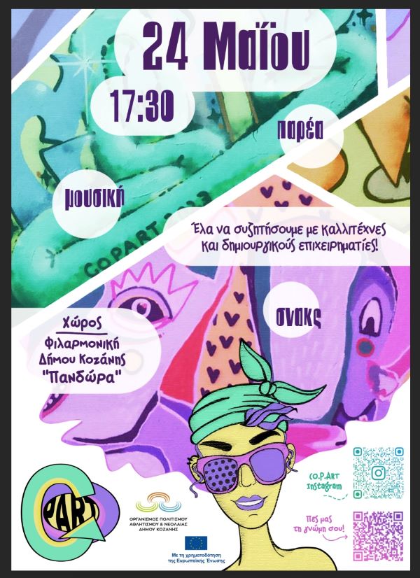 Το CoPART, με κεντρική θεματική «Δημιουργικότητα, Τέχνες και Πολιτισμός, Ανάπτυξη Κοινοτήτων, Απασχολησιμότητα» στοχεύει στην ανάπτυξη δραστηριοτήτων που θα δώσουν στους νέους ηλικίας 18-30 ετών την ευκαιρία να αποκτήσουν γνώσεις σχετικά με τον πολιτισμό και τις δημιουργικές οικονομίες. Οι συμμετέχοντες θα έχουν την ευκαιρία να αναπτύξουν δεξιότητες και ικανότητες, οι οποίες θα τους ενδυναμώσουν όσον αφορά την απασχολησιμότητα και θα ενισχύσουν την αίσθηση του ανήκειν και του ενεργού πολίτη, μέσω της συμμετοχής τους στη διαδικασία λήψης αποφάσεων και σε κοινοτικές δραστηριότητες.