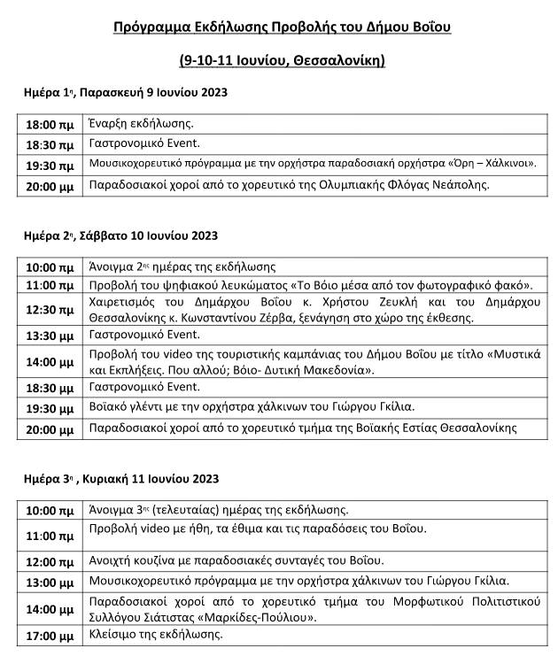 Ο Δήμος Βοΐου σας προσκαλεί να συμμετέχετε στις εκδηλώσεις του τριημέρου 9-10-11 Ιουνίου στη Ν. Παραλία Θεσσαλονίκης.
