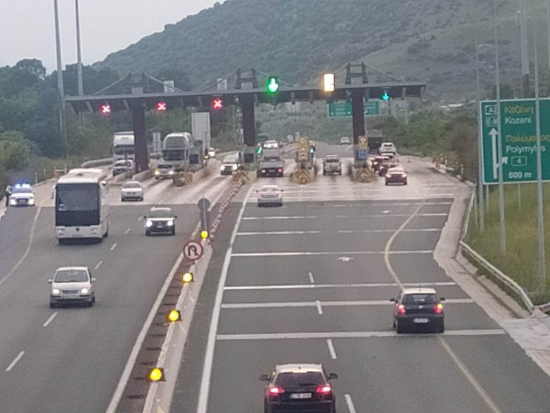 Στο σημείο των διοδίων του Πολυμύλου Κοζάνης, έντονη ήταν η παρουσία της Αστυνομίας και της Τροχαίας για την ομαλή διεξαγωγή της κίνησης .