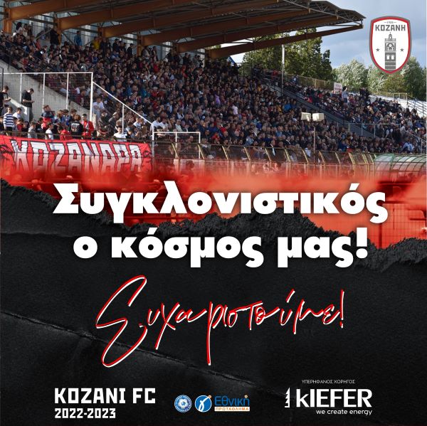Με τέτοιο κατάμεστο γήπεδο και τέτοιο παλμό η ομάδα μας ΦΣ Κοζάνη, δεν έχει να φοβηθεί τίποτα. Οι φίλαθλοι μας δείχνουν τον… δρόμο για την «απογείωση» της ομάδας…”, Απέδειξαν ότι είναι δίπλα μας, και αποτελεί τον 12ο παίκτη μας. Όλοι μαζί, φίλαθλοι, Ομάδα, Αθλητές, Διοίκηση, Αιρετοί, Δήμος, Περιφέρεια, Επιχειρήσεις, μπορούμε να καταφέρουμε σπουδαία πράγματα για την πόλη μας, για την περιοχή μας.