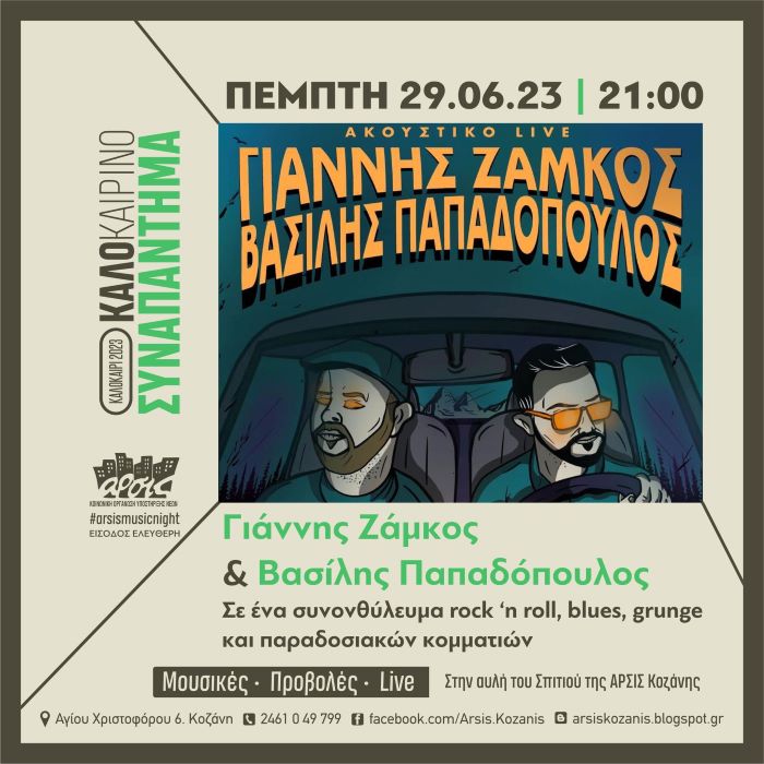 Στο ΚΑΛΟκαιρινό ΣΥΝΑΠΑΝΤΗΜΑ της Πέμπτης 29 Ιουνίου, στις 21:00, έρχονται ο Γιάννης Ζάμκος και ο Βασίλης Παπαδόπουλος, σε ένα ακουστικό live.