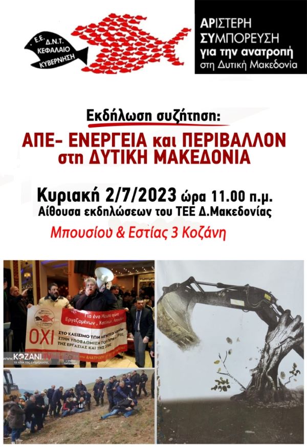 Καλούμε όλους τους πολίτες της Δυτικής Μακεδονίας στην εκδήλωση –συζήτηση με θέμα τις ΑΠΕ, την Ενέργεια και το Περιβάλλον στη Δυτική Μακεδονία
