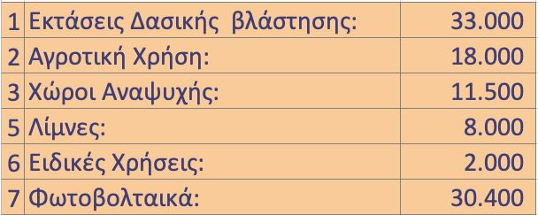 2. Οι χρήσεις για τις οποίες προορίζονται τα νέα εδάφη είναι περίπου οι εξής (σε στρέμματα):