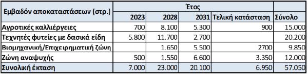 6. Το εμβαδόν των αποκατεστημένων εκτάσεων προσδιορίζεται μεν σε διάφορες χρονικές φάσεις (2023, 2028, 2031), όπως φαίνεται παραπάνω, αλλά δεν υπάρχει χρονική δέσμευση για την διαμόρφωση της «τελικής κατάστασης».