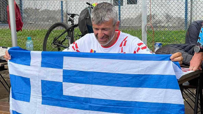 Την Ελληνική σημαία ιδιαίτερα συγκινημένος σήκωσε ο Κοζανίτης Θανάσης Στημονιάρης , με καταγωγή από τα Πετρανά, στον υπερμαραθώνιο